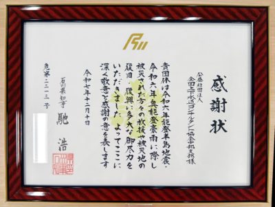 【感謝状】令和6年能登半島地震・令和6年奥能登豪雨知事感謝状について